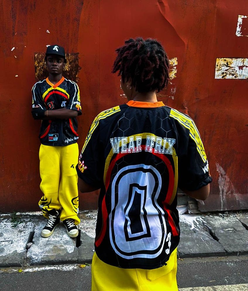 AFRIX Jersey The AFRIX Jersey is all about minimal style with maximum impact. Featuring a plain front for a clean, sleek look and the bold red AFRIX “A” logo at the back, this piece makes a statement from behind while staying simple up front. Designed for comfort and street-ready style, it’s perfect for those who move different and lead the culture.