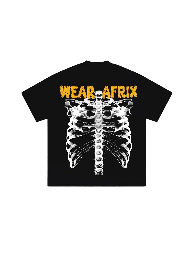 🔹 Product Title Example Afrix Adey Skeleton T-Shirt – Limited Street Edition 🔹 Product Details Material: Heavyweight 100% cotton (240 GSM) for that premium, structured streetwear feel. Fit: Oversized / relaxed fit — built for comfort and bold style. Design: Custom “Adey Skeleton” graphic print symbolizing life, strength, and resilience through struggle. Print Type: High-quality screen print with cracked ink effect for a raw, authentic vibe. Colorways: Available in Jet Black and Off-White. Neckline: Ribbed crew neck with reinforced stitching. Fabric Feel: Thick, soft, and durable — designed to age beautifully. Unisex: Fits all styles and genders. Care: Wash cold, inside out. Air dry only. Drop Info: Part of the exclusive Afrix Drop ’25 — once sold out, it’s done.