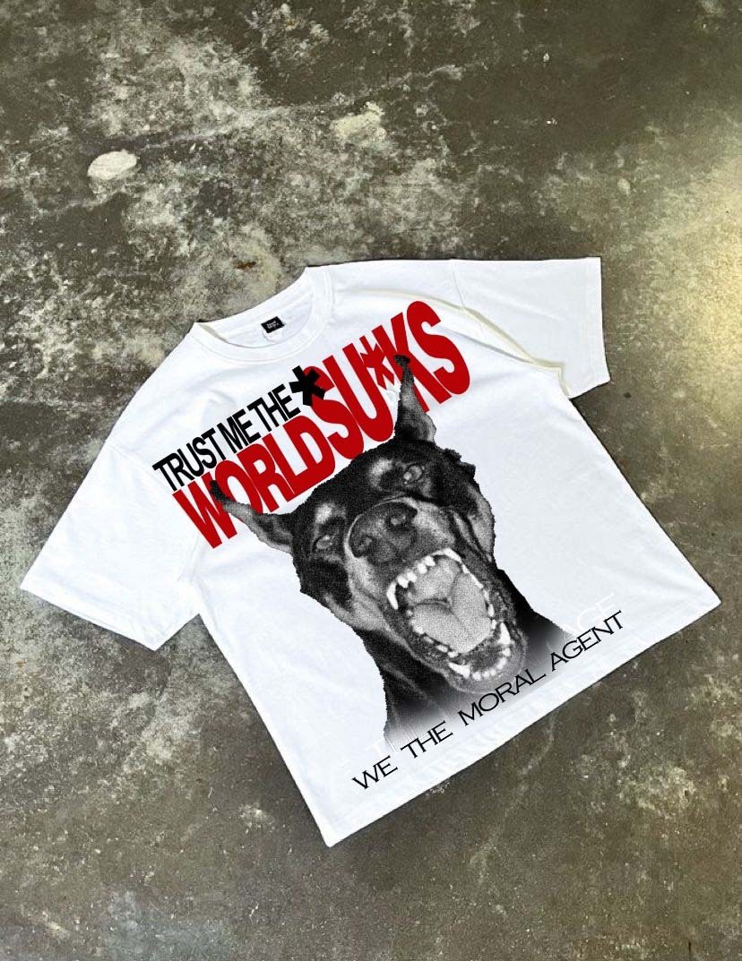 the world sucks gam , heavy cotton !Stay bold in comfort. Our premium Afrix tees are crafted from soft, breathable cotton for all-day wear. Featuring striking graphics and a clean fit, this tee is made to stand out—whether you’re on the move or laying low. Built for everyday streetwear, it’s smooth on the skin and tough enough to handle your grind.